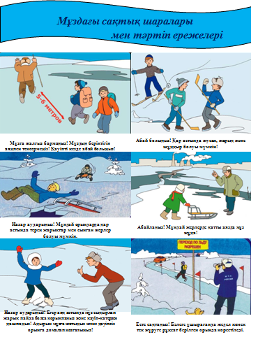Күзгі-қысқы кезеңде су айдындарында қауіпсіздік ережелерін сақтамау жиі адамдардың өліміне және жарақаталуына әкеп соғады. Қараша мен желтоқсан аралығында, яғни тұрақты аязбасталғанға дейін мұз қатпайды. Кешкі немесе түнгі суықта қатқан мұз берік болса да, күндіз ол белгілі мөлшерде еріп, өз тығыздығын жоғалтады. Мұз қату кезеңіндегі қауіпсіздік мәселелерін ежауапкершілікпен қараңыз!