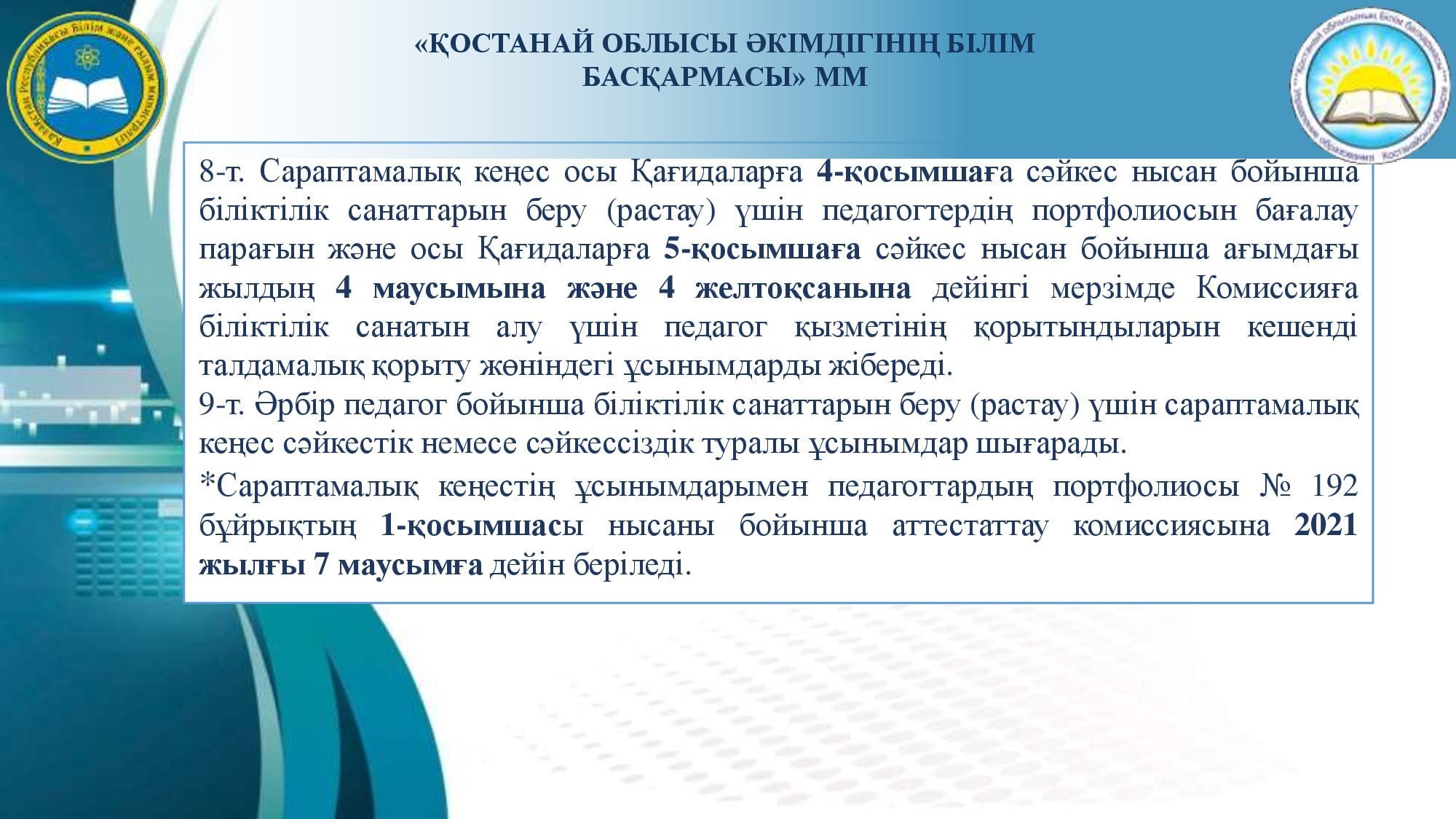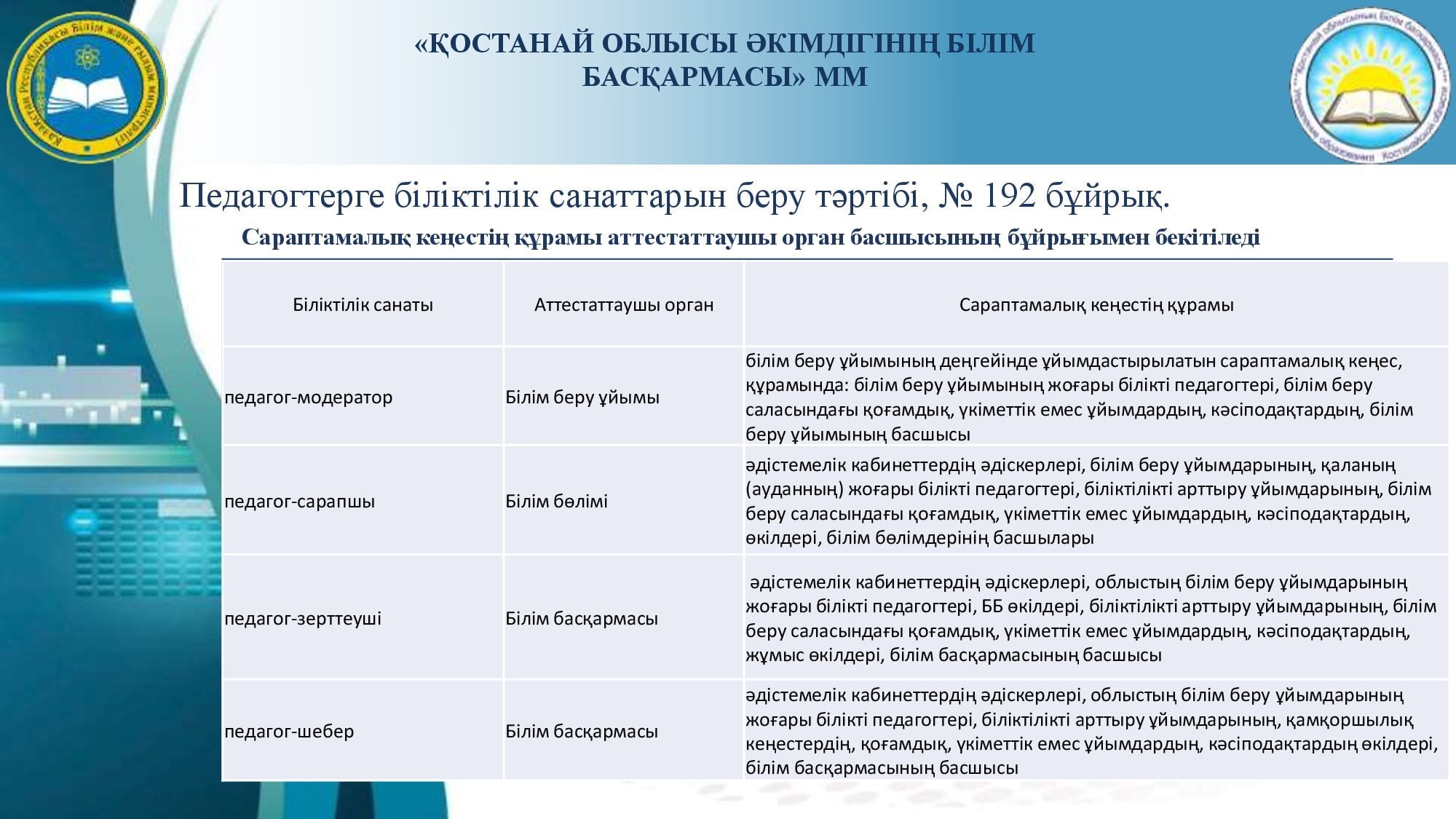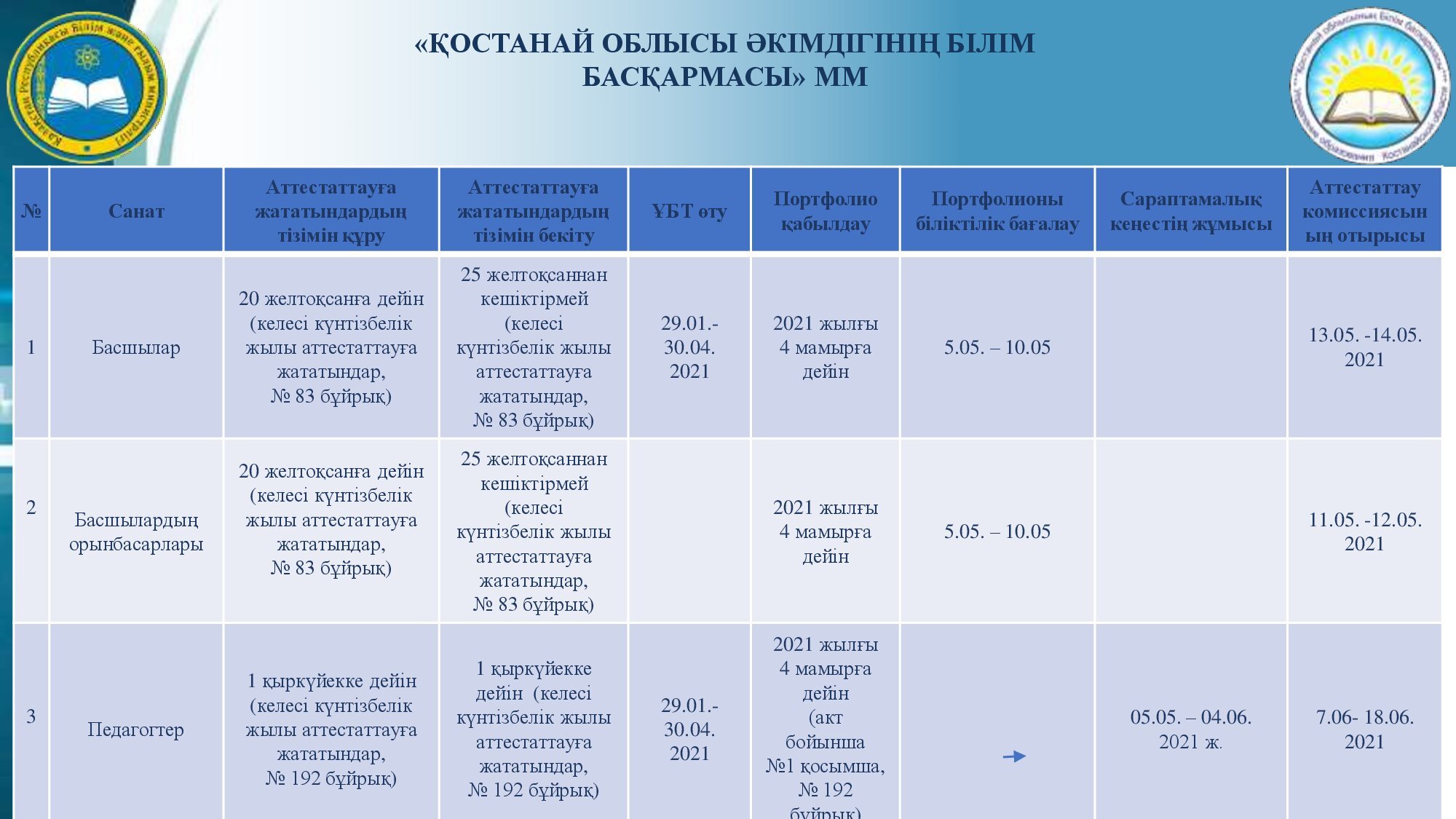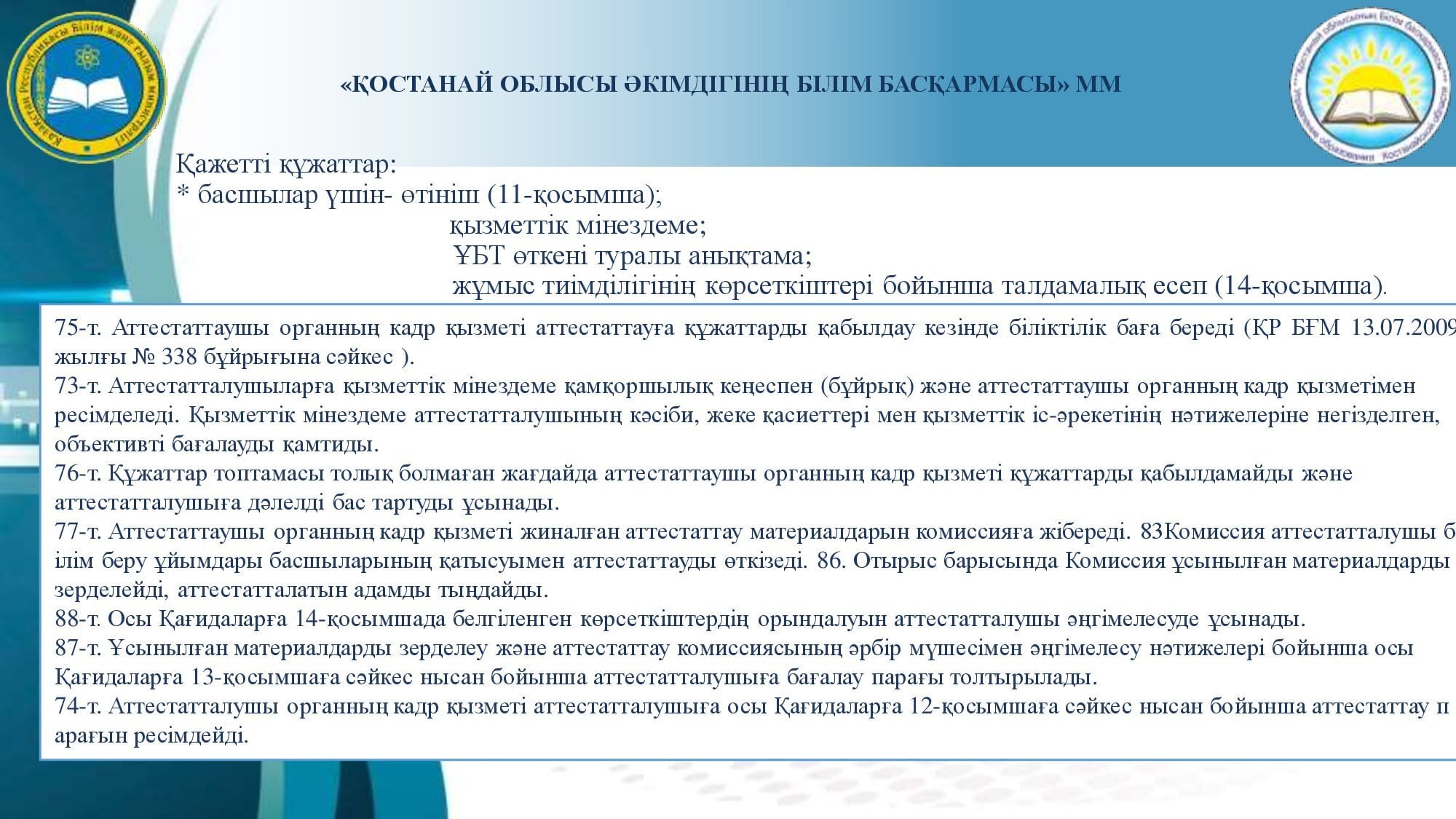 Аттестаттау және біліктілік санаттарын беру (растау) рәсімін өткізу туралы