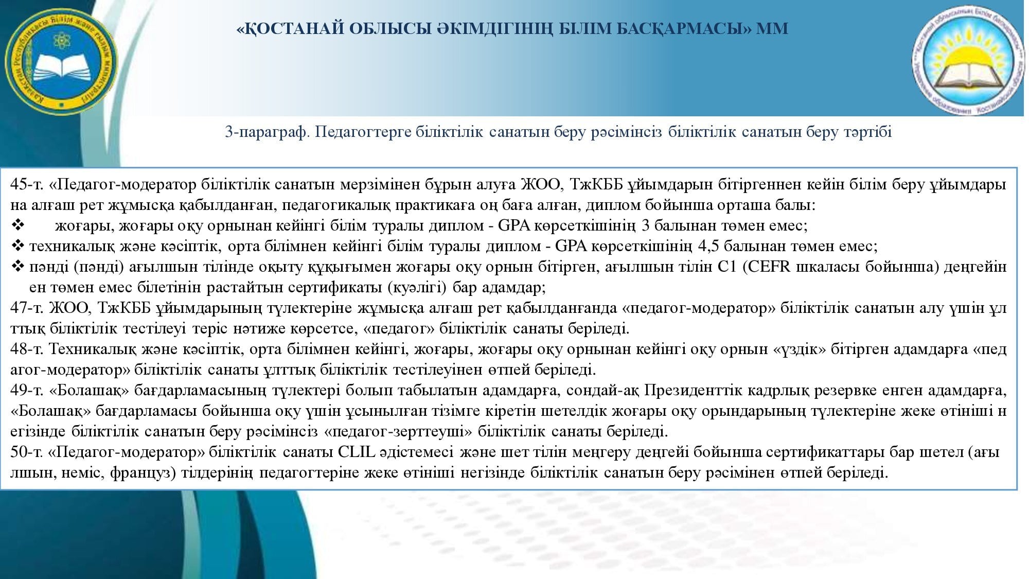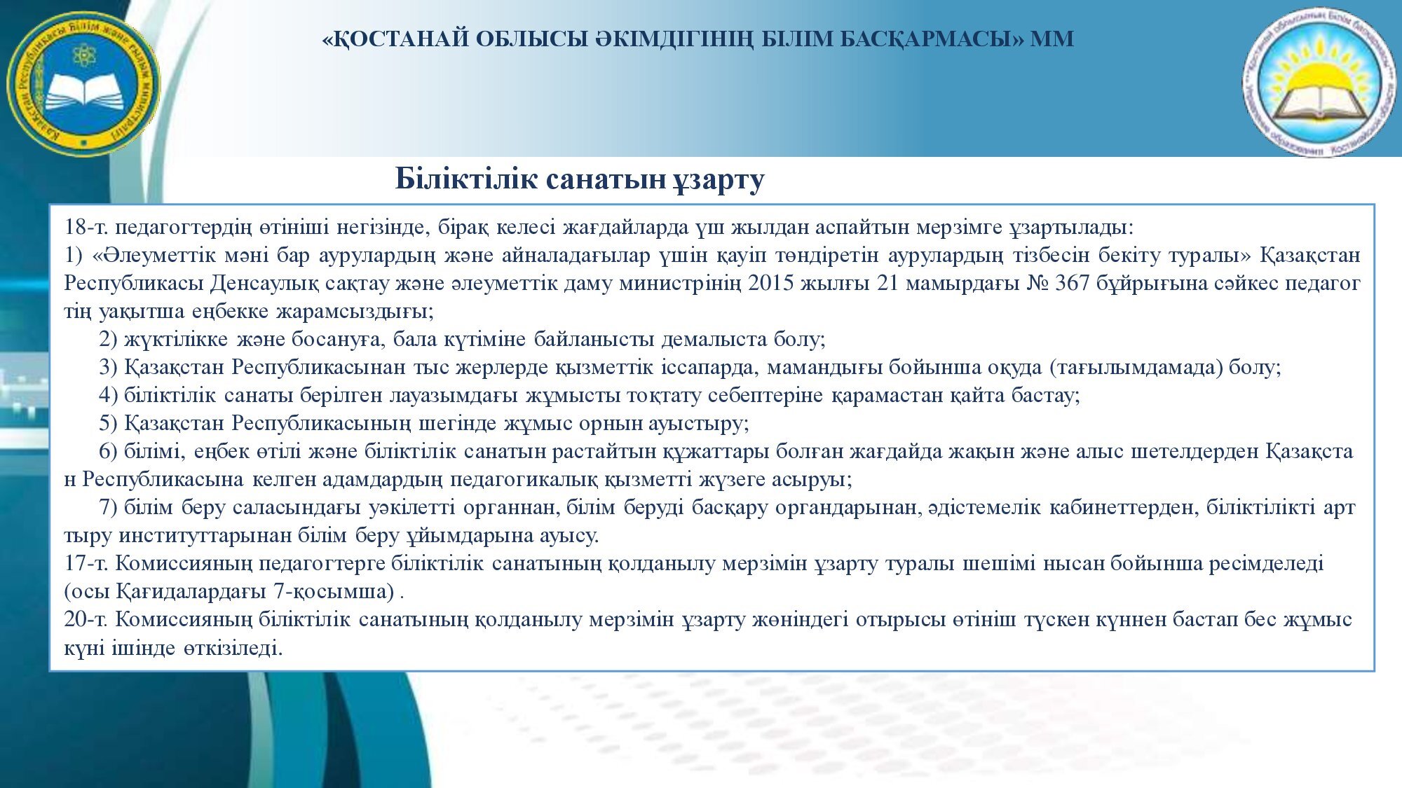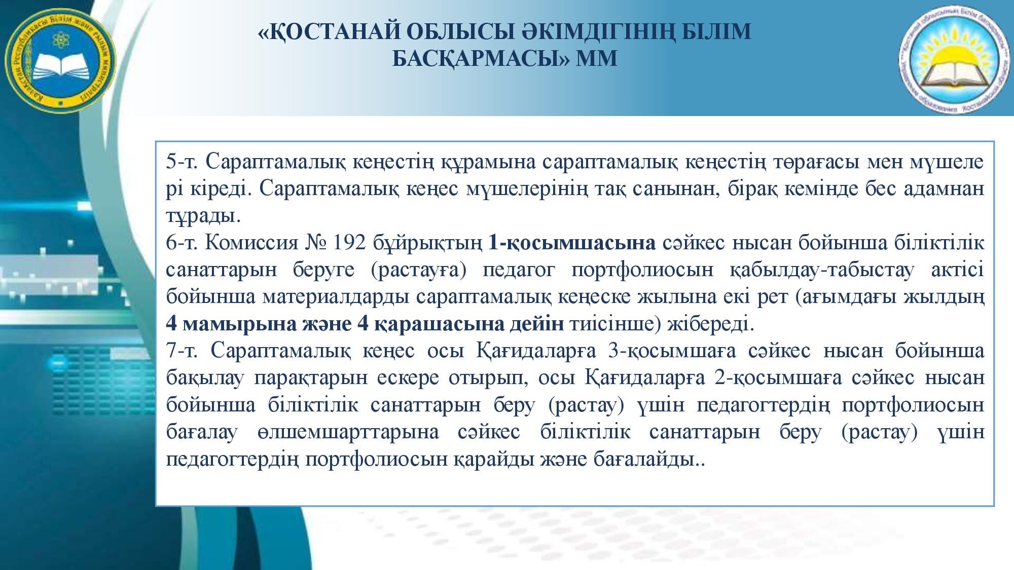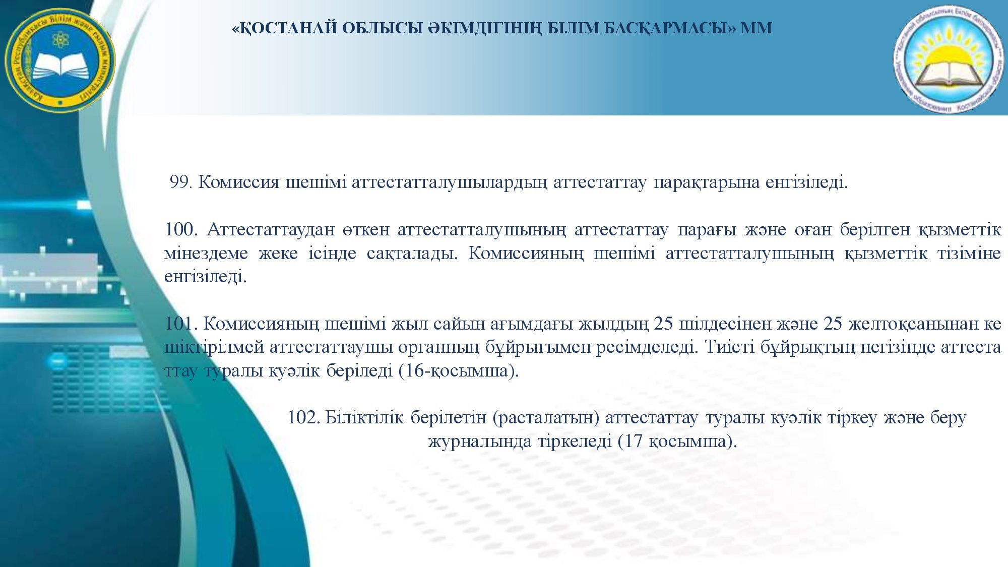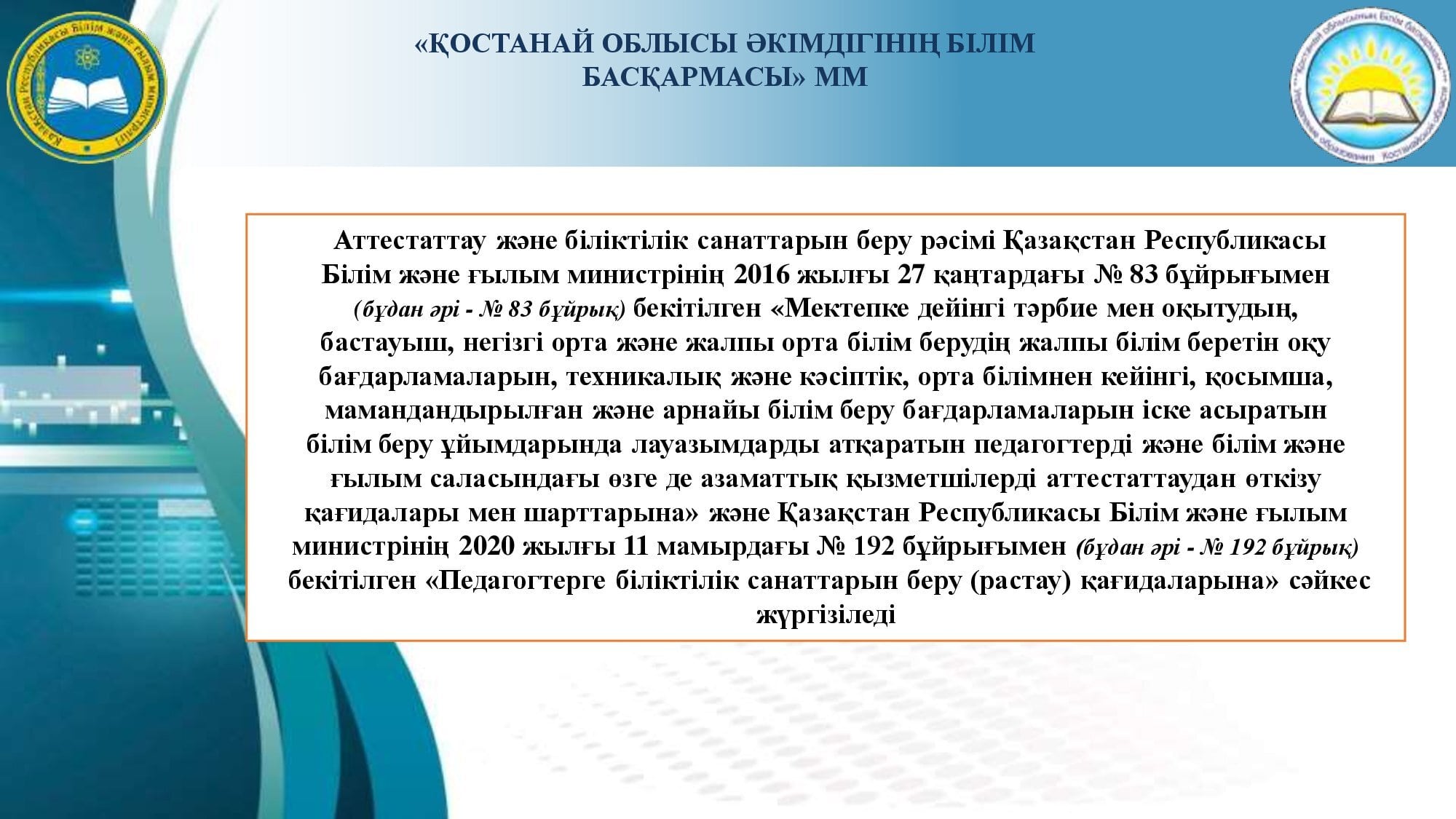 Аттестаттау және біліктілік санаттарын беру (растау) рәсімін өткізу туралы