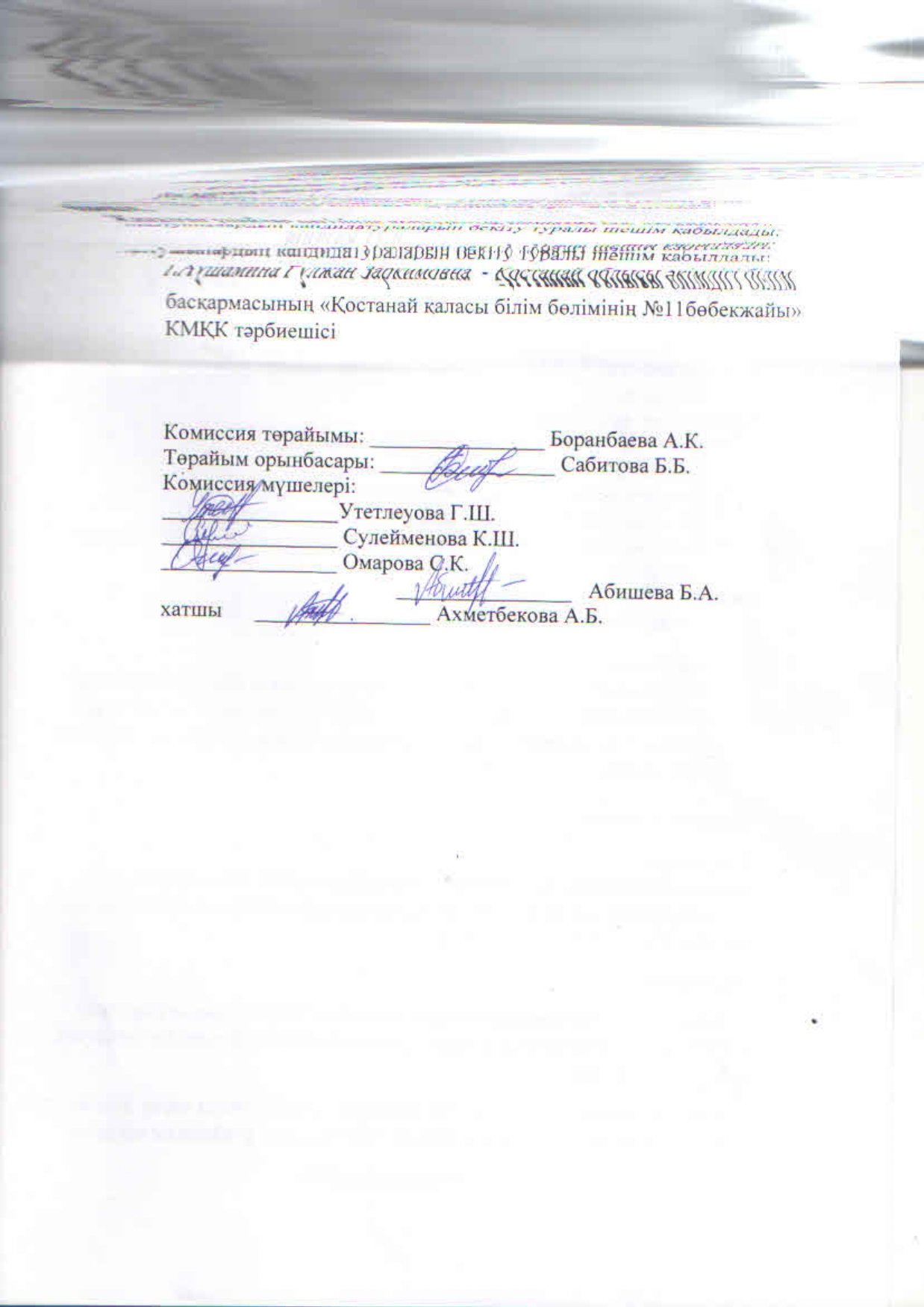 Акышова Актоты Ауданбековна – коммиссия мүшесі болып тағайындалғандығы туралы таныстырылды.