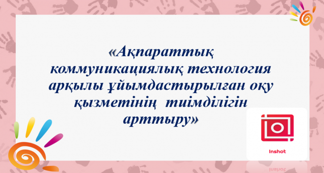 | 1 | «Ақпараттық-коммуникациялық технология арқылы ұйымдастырылған оқу қызметінің тиімділігін арттыру» | .pptx |