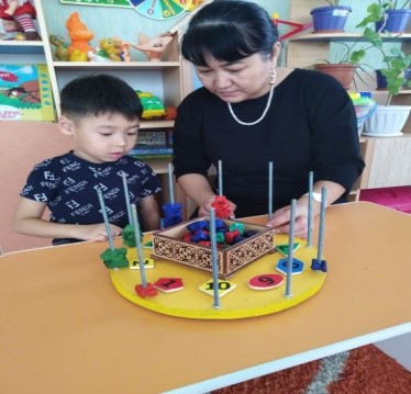 Мектепалды даярлық топтарда – құрастыруға, санның құрамын ажыратуға, логикалық тапсырмаларды шешуге, реттік санауға, затты санмен сәйкестендіруде қабілеттерін дамытады.