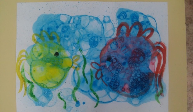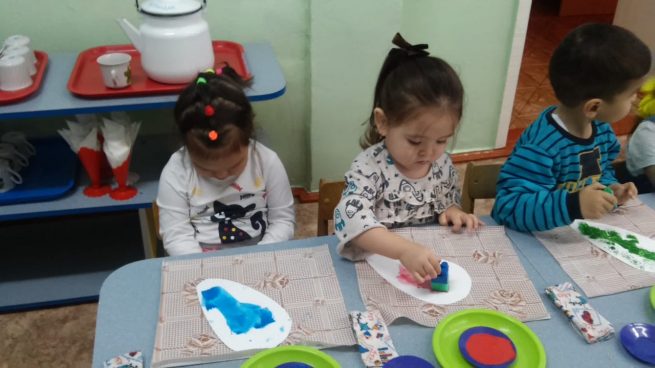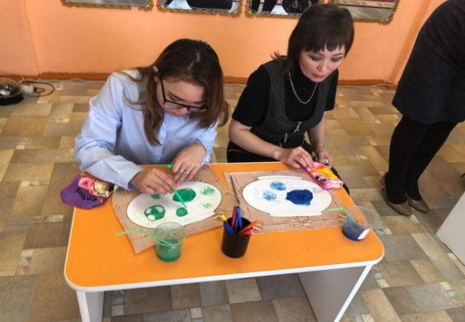 Ортаңғы «Шаңырақ» тобының тәрбиешісі Фаткуллина К.С. «Шығармашылық» білім беру саласы , пән «сурет салу» бойынша дәстүрден тыс сурет салу «сабын көпіршіктерімен» шебер сынып көрсетті.