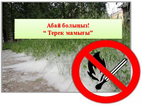 -егер сіз көшеде терек мамығымен ойнап жүрген балаларды көрсеңіз , жанынан өтіп кетпей,оның қауіпті екенін , өрттің шығуы мүмкіндігін түсіндіріңіз. -егер сіз жаныңызда зардап шеккен қайғылы оқиғаның куәгері болсаңыз, бұл туралы дереу құтқару қызметінің 101 телефонына, 112 ұялы телефонына хабарлауды ұмытпыңыз.