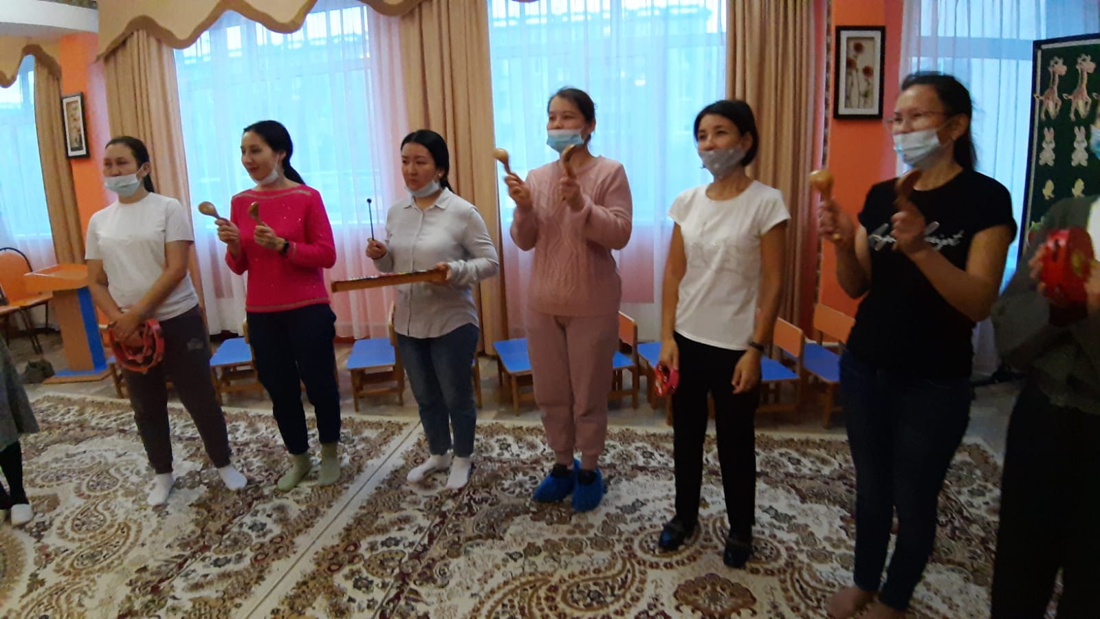 Санитарлық эпидемиологиялық талаптарды орындай отыра, музыка ұйымдастырған оқу қызметіне ересек, мектепалды даярлық топтарының 10 ата-анасы қатысты.