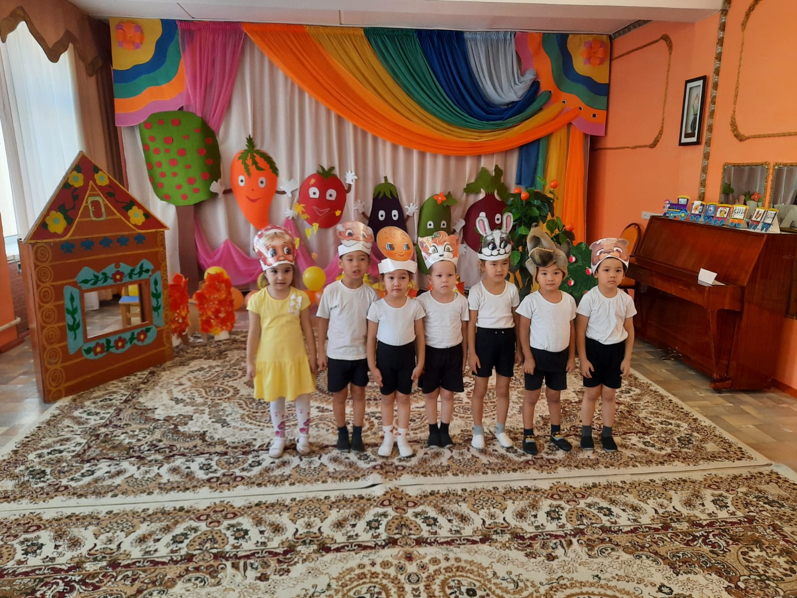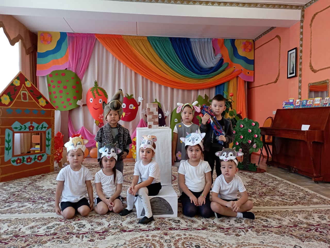 Ересек «Балбөбек»тобы орыс халық «Жеті лақ пен қасқыр» ертегісін сахналады. Ертегі көрнекіліктері ертегіге сай жасалған. Балалар ертегіні музыкамен байланыстырып ойнап шықты. Балалар ертегіні сахналауда биледі де ,ән де айтты.