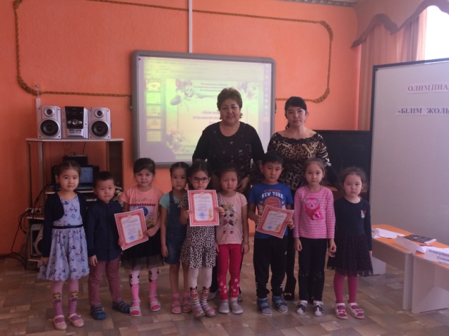 Олимпиаданы қортындылай келе,»Ақерке» тобы- І орынға, «Қуыршақ» тобы- ІІ орынға , «Ақбота» тобы- ІІІ орынға ие болды.