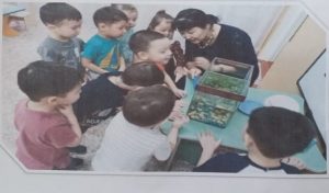 Ата-аналарды балабақша өмірімен ,балалардың бір күндік күн тәртібімен таныстыра отырып, ата-анамен балабақша арасындағы ынтымақтастықты дамыту мақсатында 2020 жылдың қараша айының 16-шы жұлдызымен 20-шы жұлдызын қоса бөбекжай-бақшасында «Балабақшадағы бір күнім» тақырыбында балалардың балабақшадағы қызықты сәттерінен фото көрме ұйымдастырылды. Көрмеге балабақшадағы барлық топ тәрбиешілері белсене қатысып, өз топтарындағы балалардың күн тәртібін фотоколлаж арқылы қысқаша баяндады. Аталмыш көрмені ата-аналар қызыға тамашалап, балаларының бөбекжай-бақшадағы бір күні босқа өтпейтініне көз жеткізіп, алғыстарын білдірді.