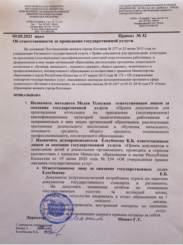 Приказ №32 об ответственности за проведение государственной услуги |