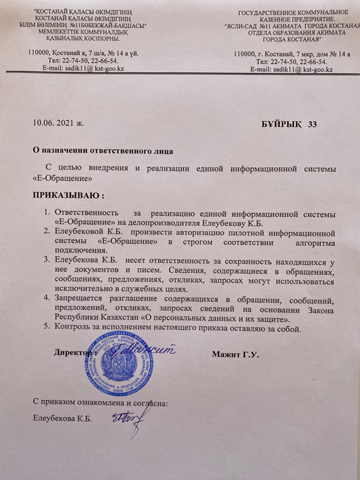 Приказ №33 о назначении ответственного лица |